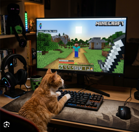 Вот и Котик в играх Май Крафте , во время ...!!!