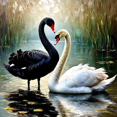 ![]() Черный лебедь Почему тоской упорной Этот старый сказ мне мил — Как печальный лебедь черный Лебедь белую любил?!.. Ослепительней кристалла, Целомудренней, чем лед, Лебедь белая блистала Над зеркальной гладью вод. Для неё, лилейно белой, Загорался ясный день, И задеть ее не смела Даже крохотная тень. И, конечно, черный лебедь Зря мечтал о ней, чудак, Наплывая в чистом небе Как ночной внезапный мрак. Не глядеть им нежно в очи, В небе рядом не летать — Как нельзя угрюмой ночи Дня лучистого догнать. Игорь Кобзев |