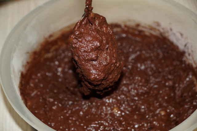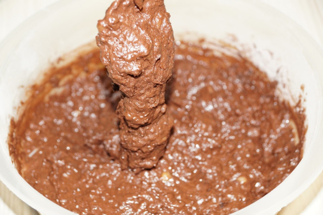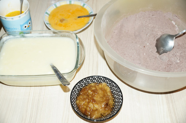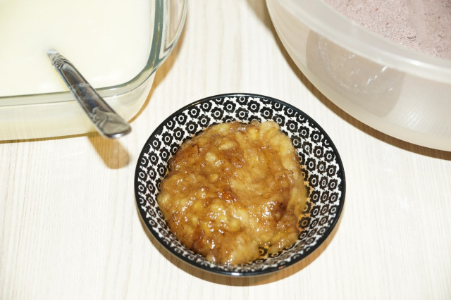 В этот раз тесто сделала с добавлением двух маленьких и очень спелых банана.