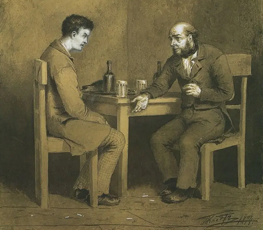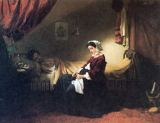 Михаил Петрович Клодт фон Юргенсбург ![]() Клодт был одним из членов-учредителей Товарищества передвижных художественных выставок и Общества русских акварелистов. Преподавал в Рисовальной школе Общества поощрения художеств (1865—1867, 1875—1913), вёл занятия по акварели в Училище барона Штиглица. В 1869—1871 гг. был рисовальщиком при экспедиции Императорской археологической комиссии на Таманском полуострове. С 1895 по 1914 гг. служил реставратором в Эрмитаже. Характерными особенностями искусства Михаила Клодта являются повествовательность, ясность композиционного построения, тщательная проработка деталей, сдержанность, аскетичность, колорита, с преобладанием в палитре теплых тонов — охристых, коричневых, красных. В выборе сюжетов опирался на современную ему действительность, изображая сложные, подчас трагические жизненные ситуации: потерю кормильца, смерть жены и т.д. Центральное место отводил передаче внутреннего состояния человека, его переживаниям и эмоциям, добиваясь необычайной выразительности и правдивости. В картинах доминируют настроения безысходности, грусти, тоски, горя. При этом ему были чужды обличительные интонации, характерные для творчества многих его современников и последователей. ![]() Казначейша. Въезд улан. 1862 г. ![]() Больной музыкант. 1859 г. ![]() Покинутая. 1883 г. ![]() Раскольников и Мармеладов. (По мотивам романа Ф. М. Достоевского "Преступление и наказание"). 1874 г. ![]() Петр І за изготовлением руля. 1872 г. |