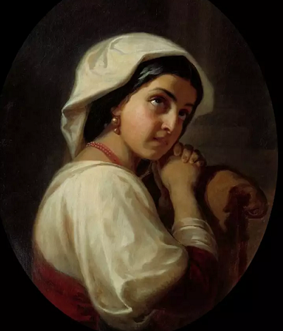 ![]() В Риме Флавицким был написан портрет молодой итальянки, выдержанный в традициях академической живописи, через которые, однако, пробивается живое чувство, с некоторой идеализацией, Произведение подписано автором, что встречается у него крайне редко. Флавицкий любуется своей моделью. Не исключено, что портрет предполагалось использовать в одной из задуманных картин. |