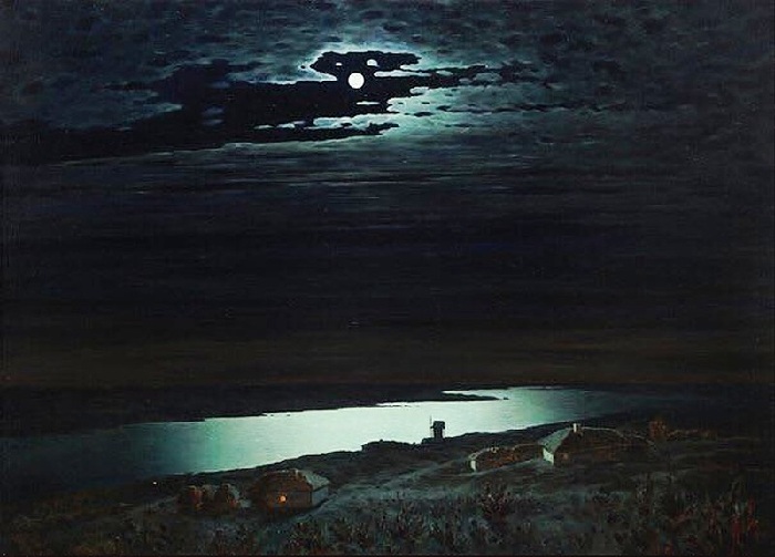 В 1880 году Куинджи устроил в своей мастерской выставку одной картины — «Лунная ночь на Днепре». Чтобы эффектно преподнести полотно, художник плотно задрапировал окна в выставочном зале и осветил картину лучом электрического света. Умелый колорист Куинджи сумел придать лунному свету необычайную реалистичность. Чтобы увидеть картину, посетители выстраивались в очередь, некоторые заглядывали за полотно — искали там источник дополнительного света. «Лунную ночь на Днепре» мечтали купить многие коллекционеры, но Куинджи продал картину великому князю Константину Константиновичу, который отправился с ней в кругосветное путешествие.