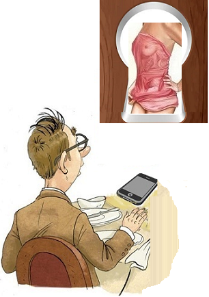 Он смотрит на красивых женщин,
