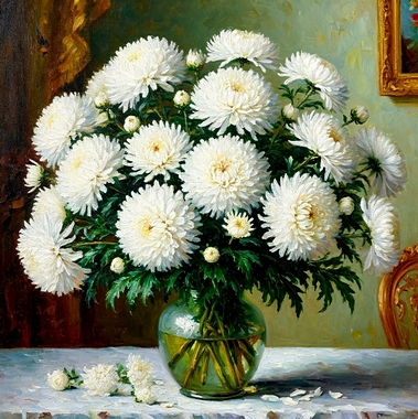 Букет из хризантем ![]() Букет хризантем осенний, Как чистой красы гений, Восторг и наслаждение, Прекрасен, без сомнения! В пышных платьях белей снега, Изящество, роскошь, нега, Лепестков завитых стрелы, Не цветы — невесты в белом! Изумительный аромат, Совершенство радует взгляд, Уходя, прощаясь, осень Дивный дар нам преподносит! Лариса Чистилина |