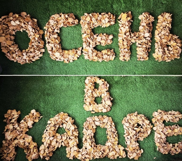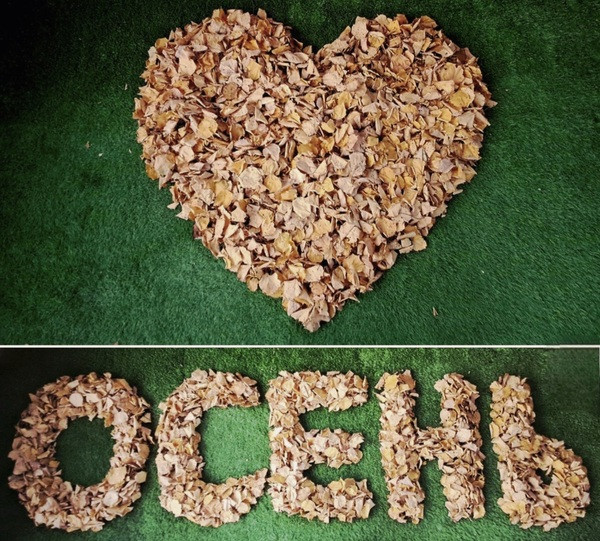 Листья для коллажей собраны и выложены лично мной на искусственном газоне.