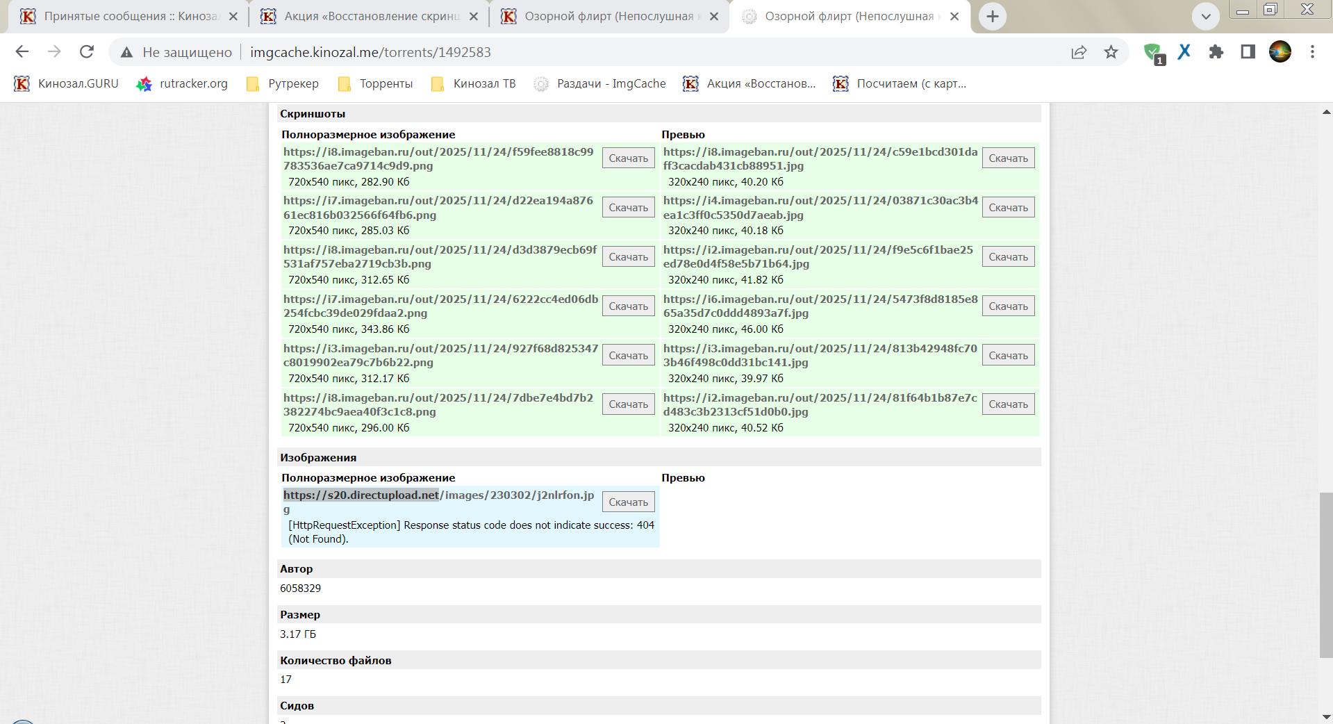 1. Заходите в раздачу с недоступными скриншотами на сайте imgcache.kinozal.me.